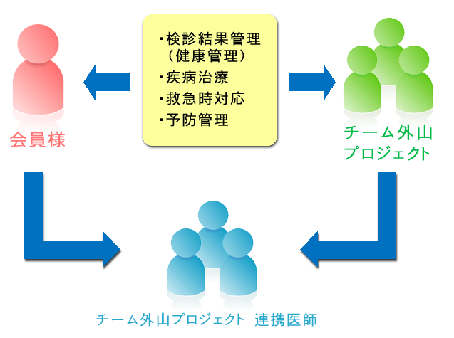 これらの素晴らしい専門医とチーム外山プロジェクトと連携を密にして会員の方の健康管理を行います。